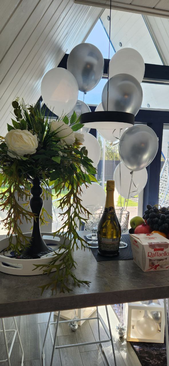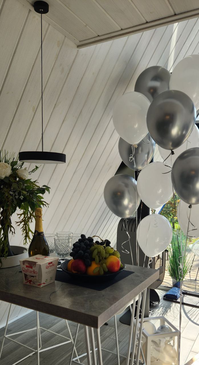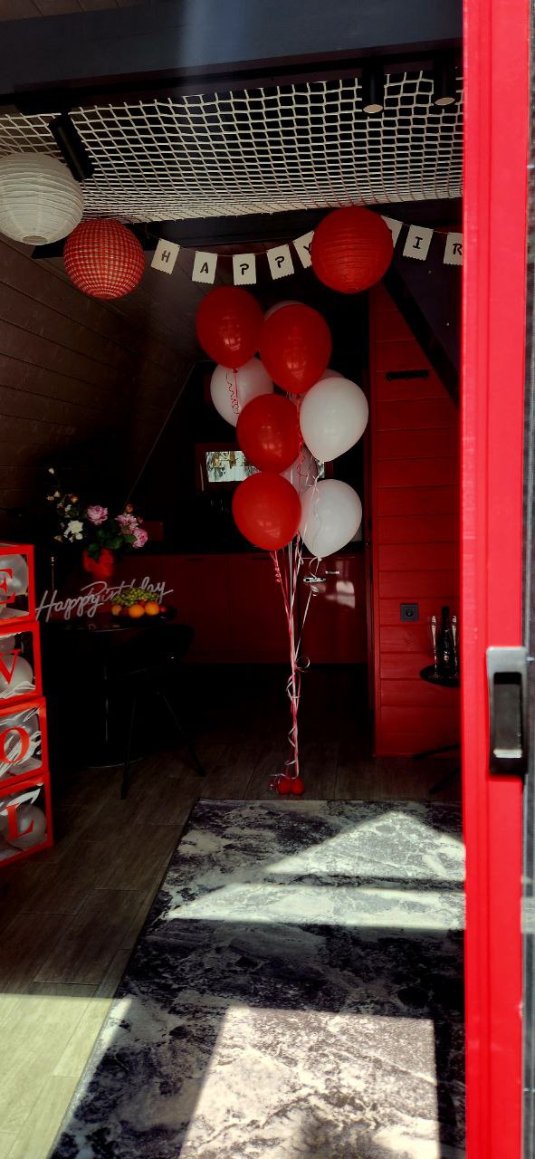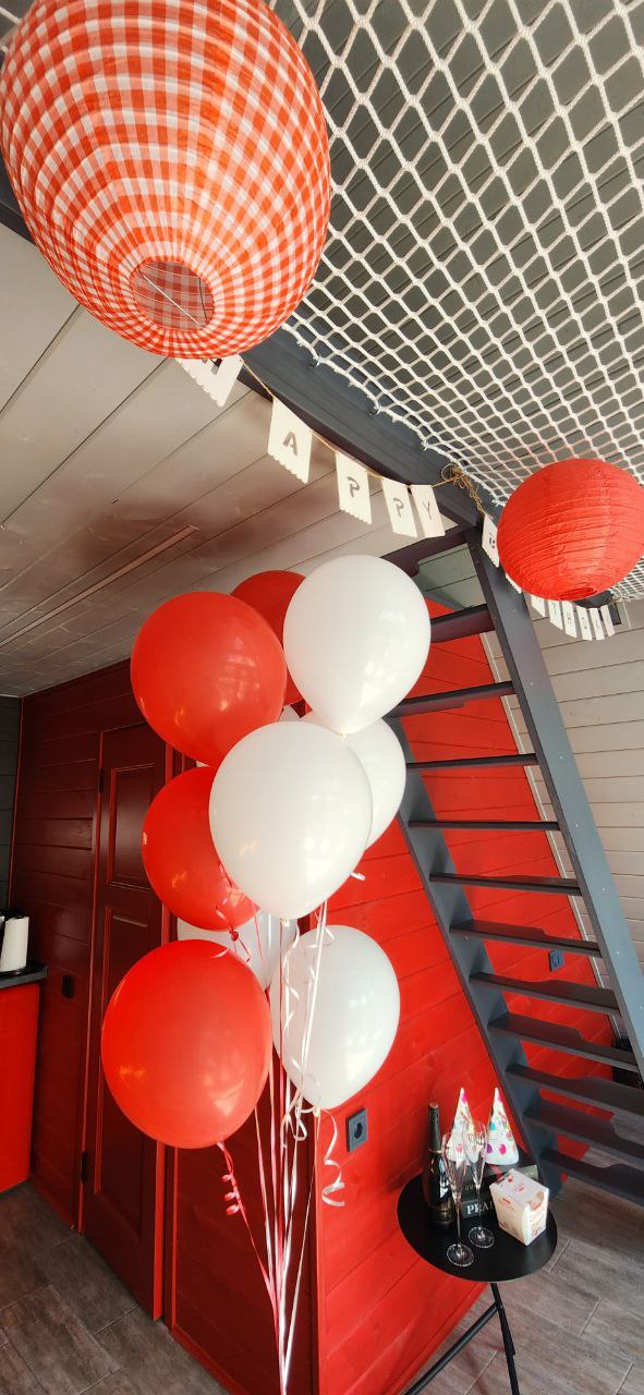 - украшаем помещение композицией из латексных гелевых шаров (15 шт) диаметром 30см;
