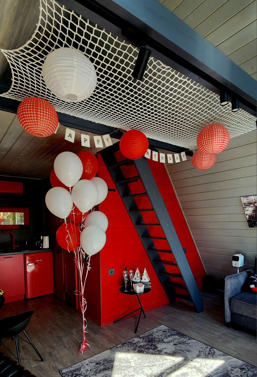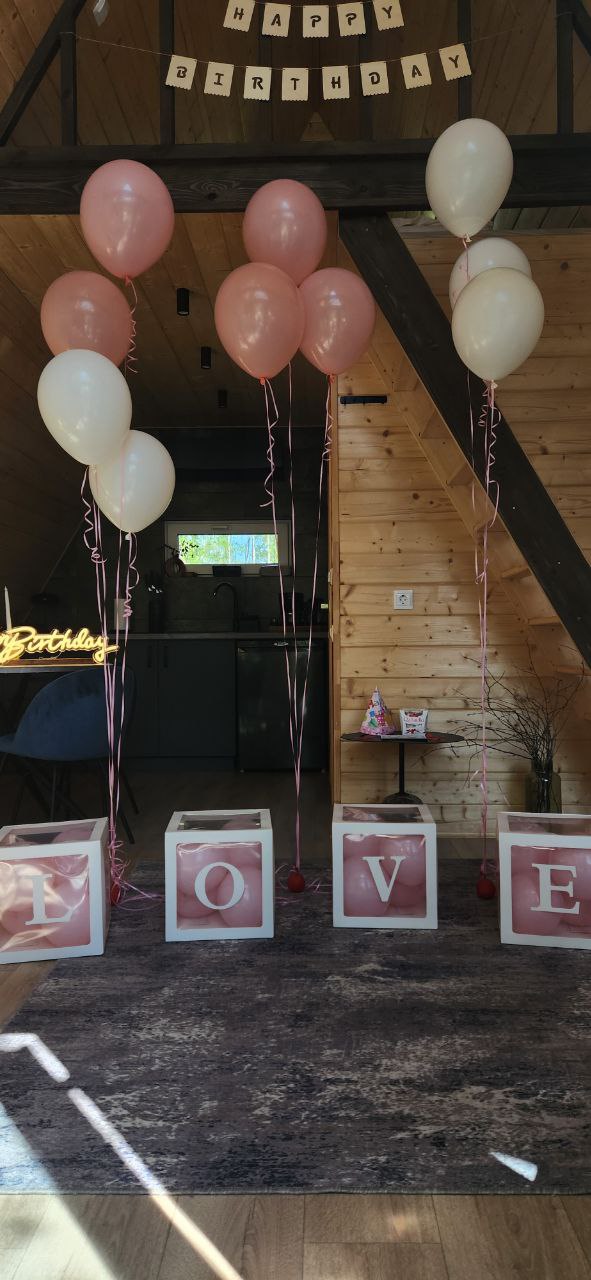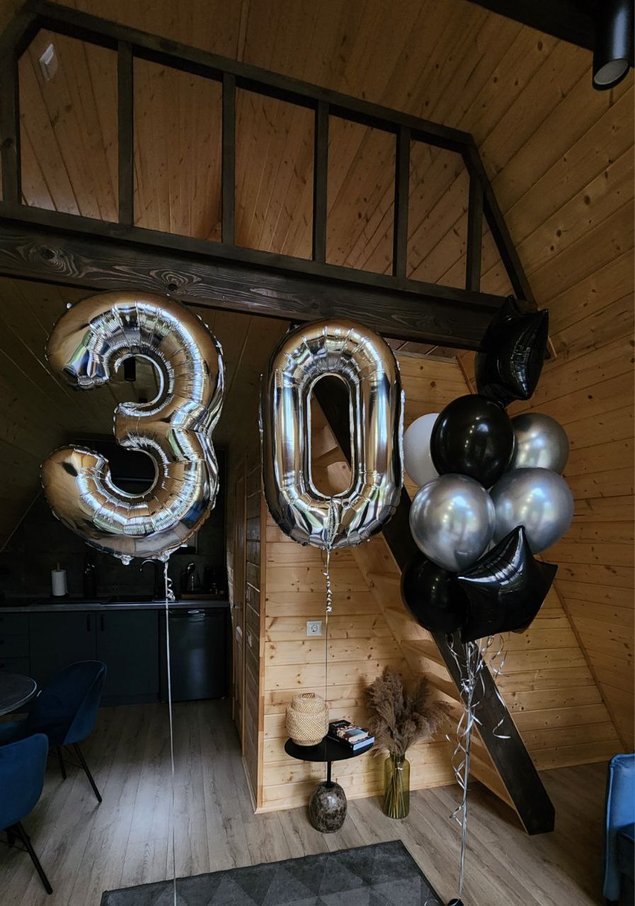 - украшаем помещение композицией из латексных гелевых шаров (15 шт) диаметром 30см;