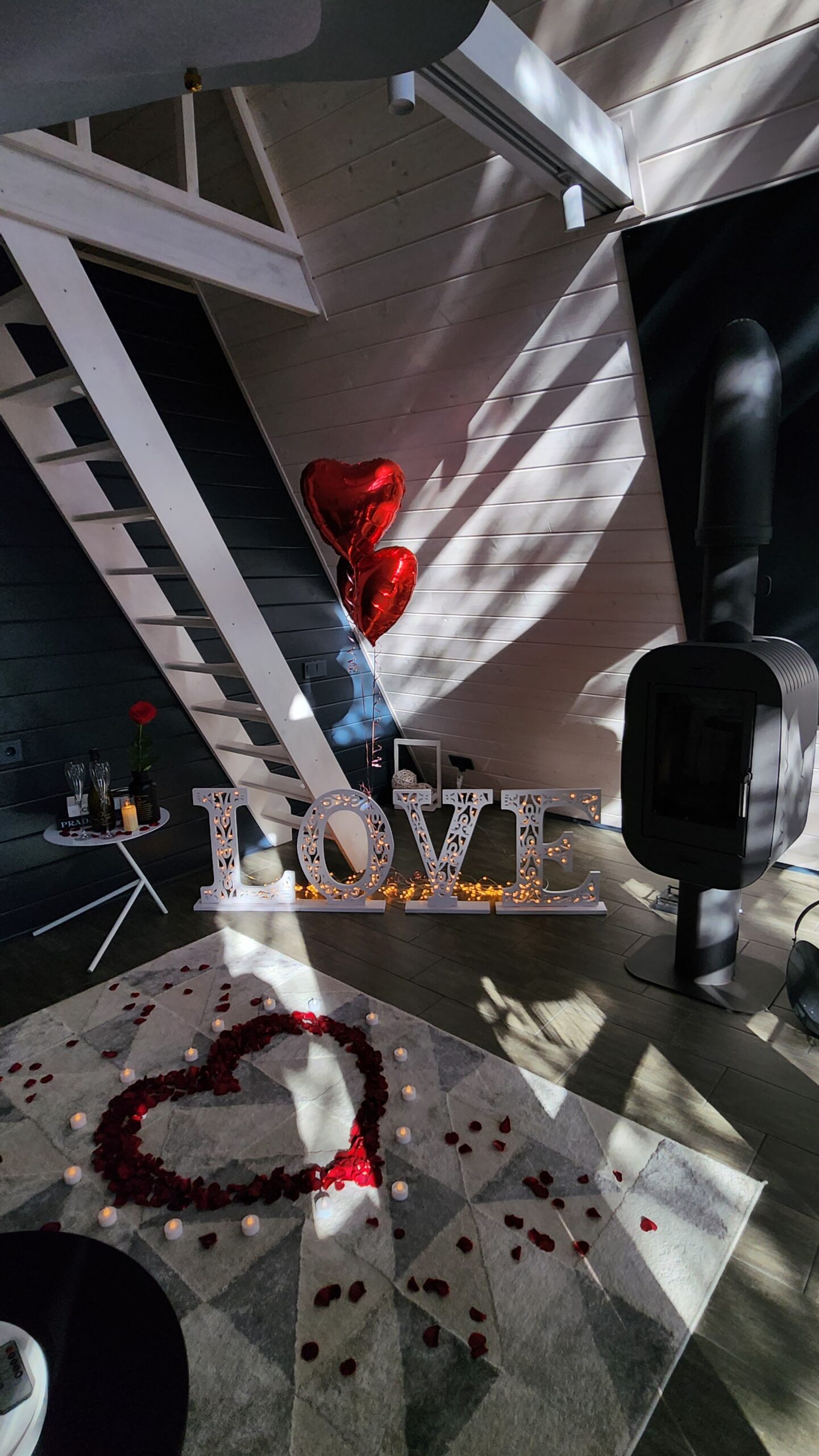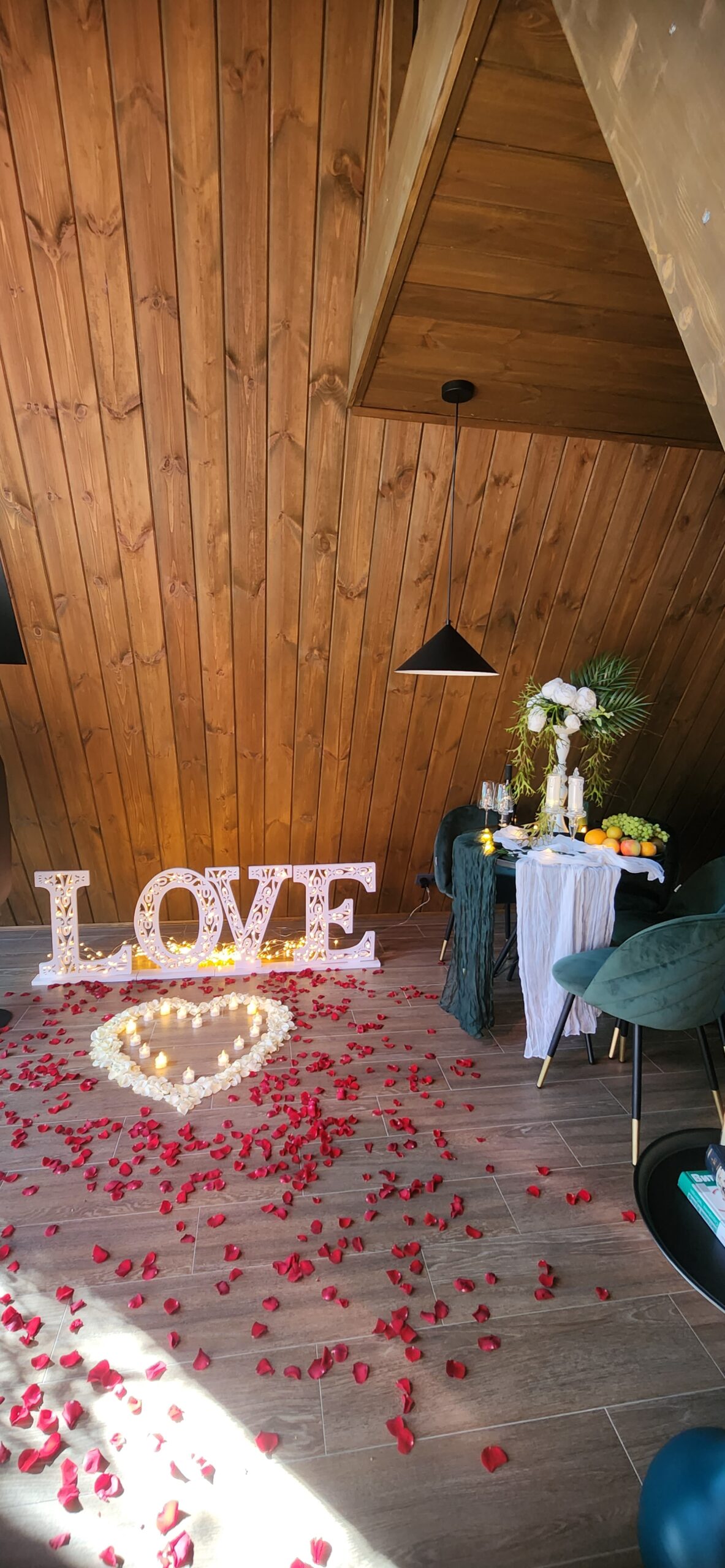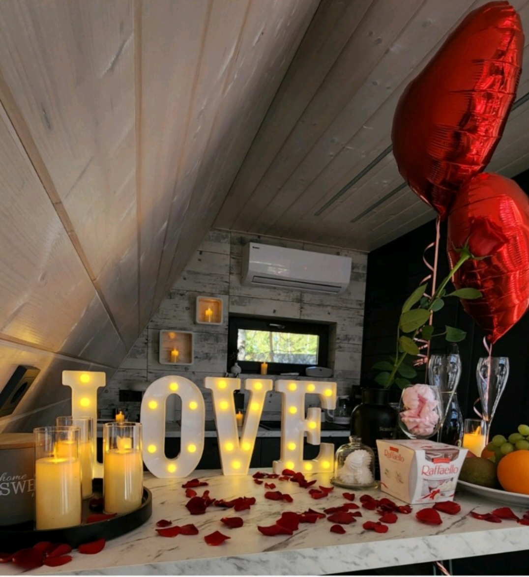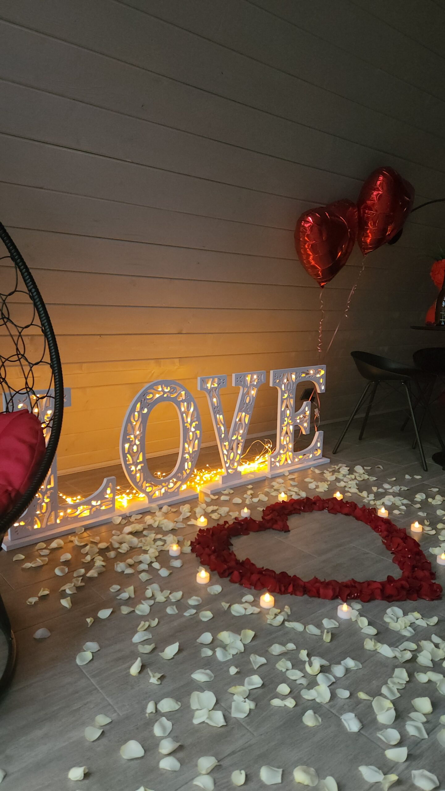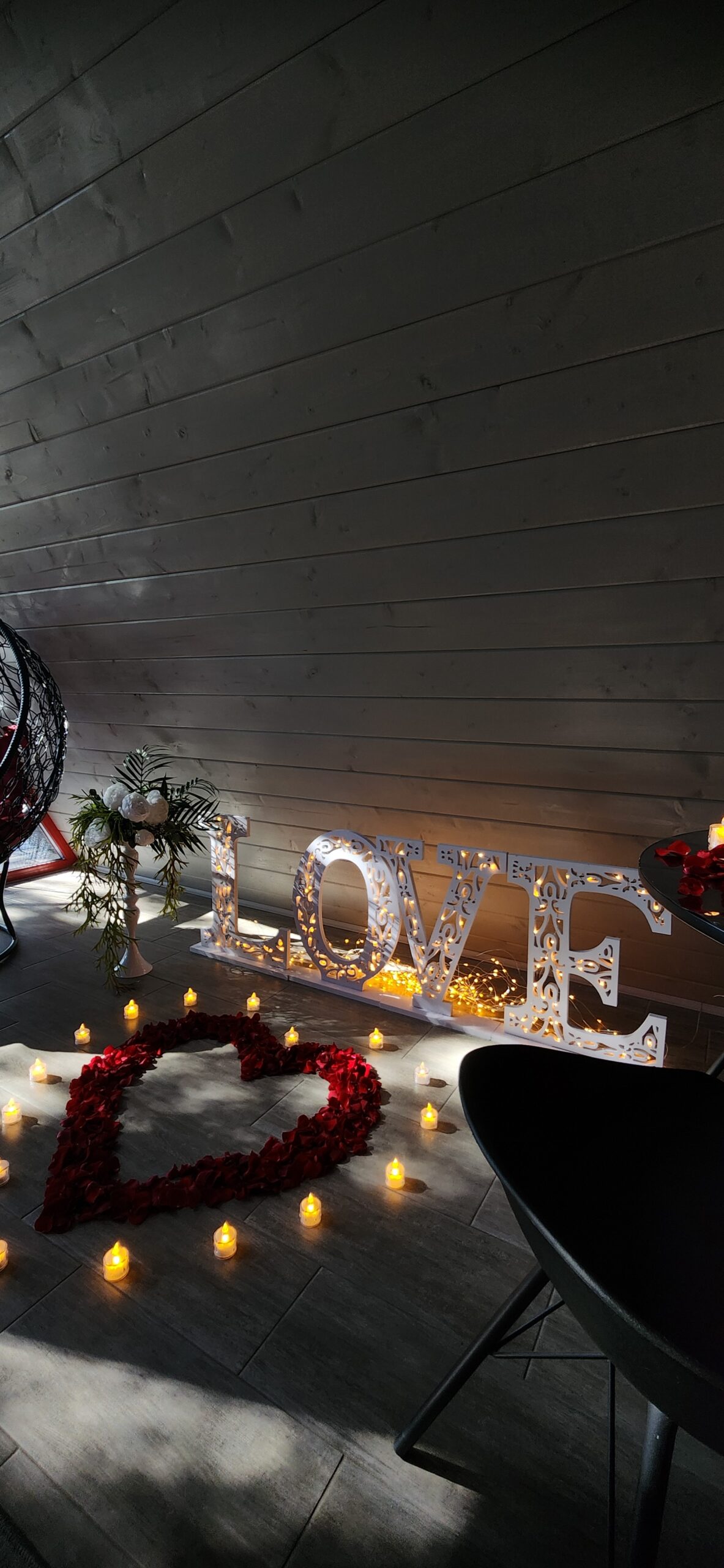 - в доме размещается светящийся декор из ажурных букв LOVE (большие).