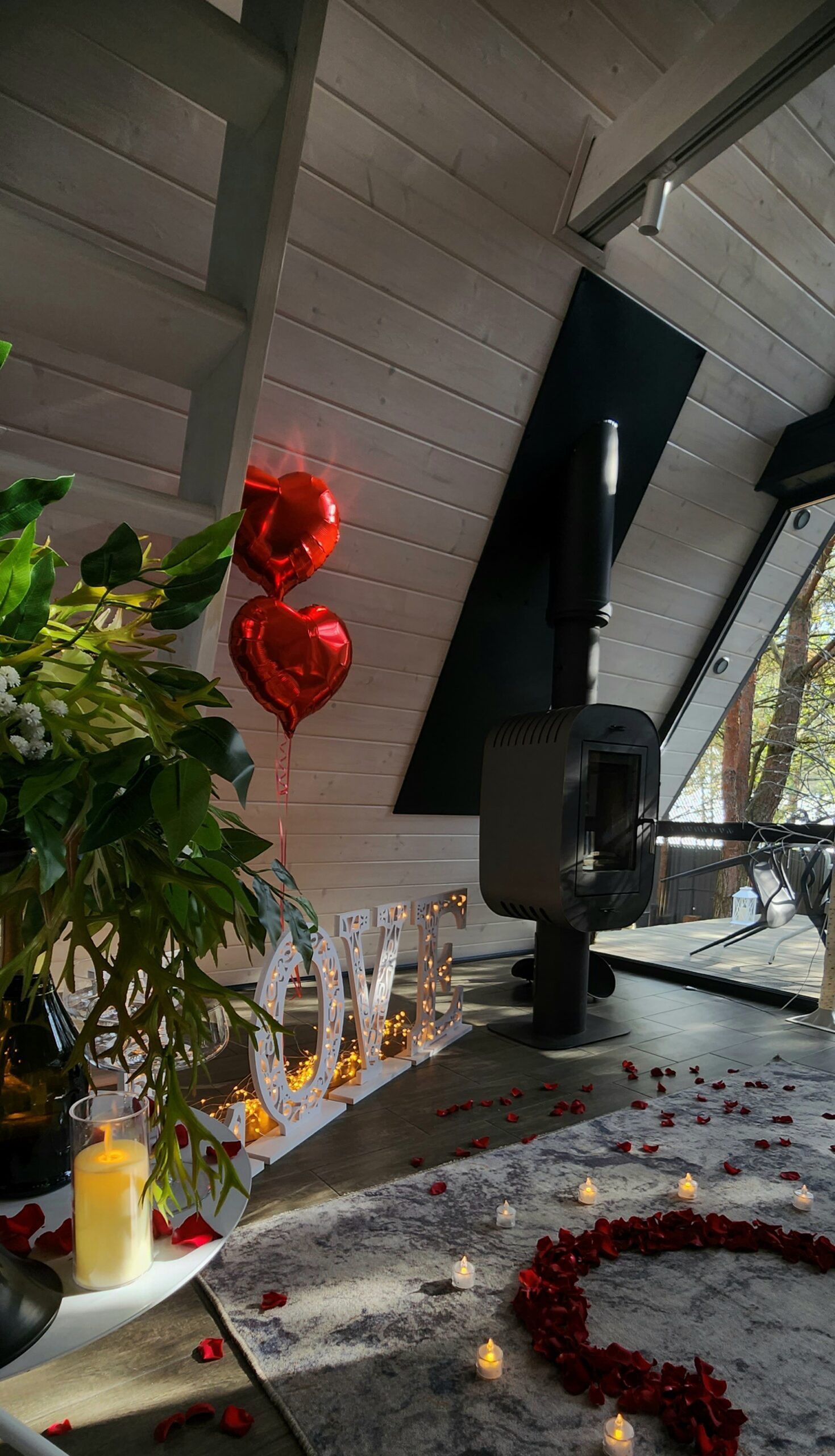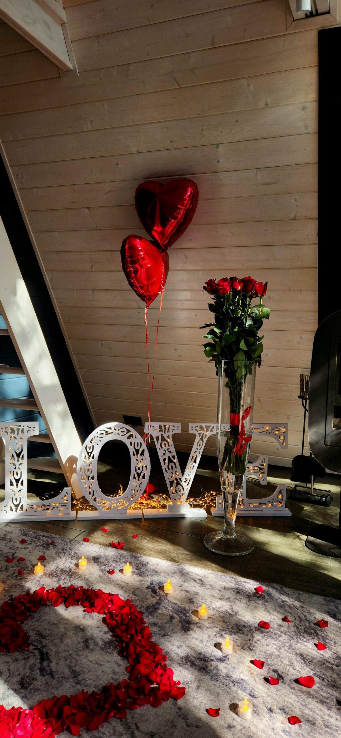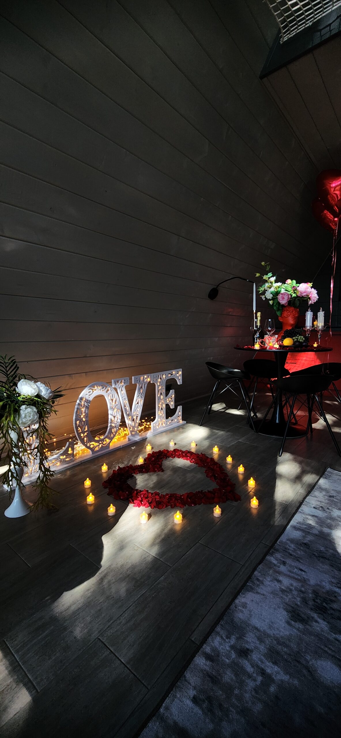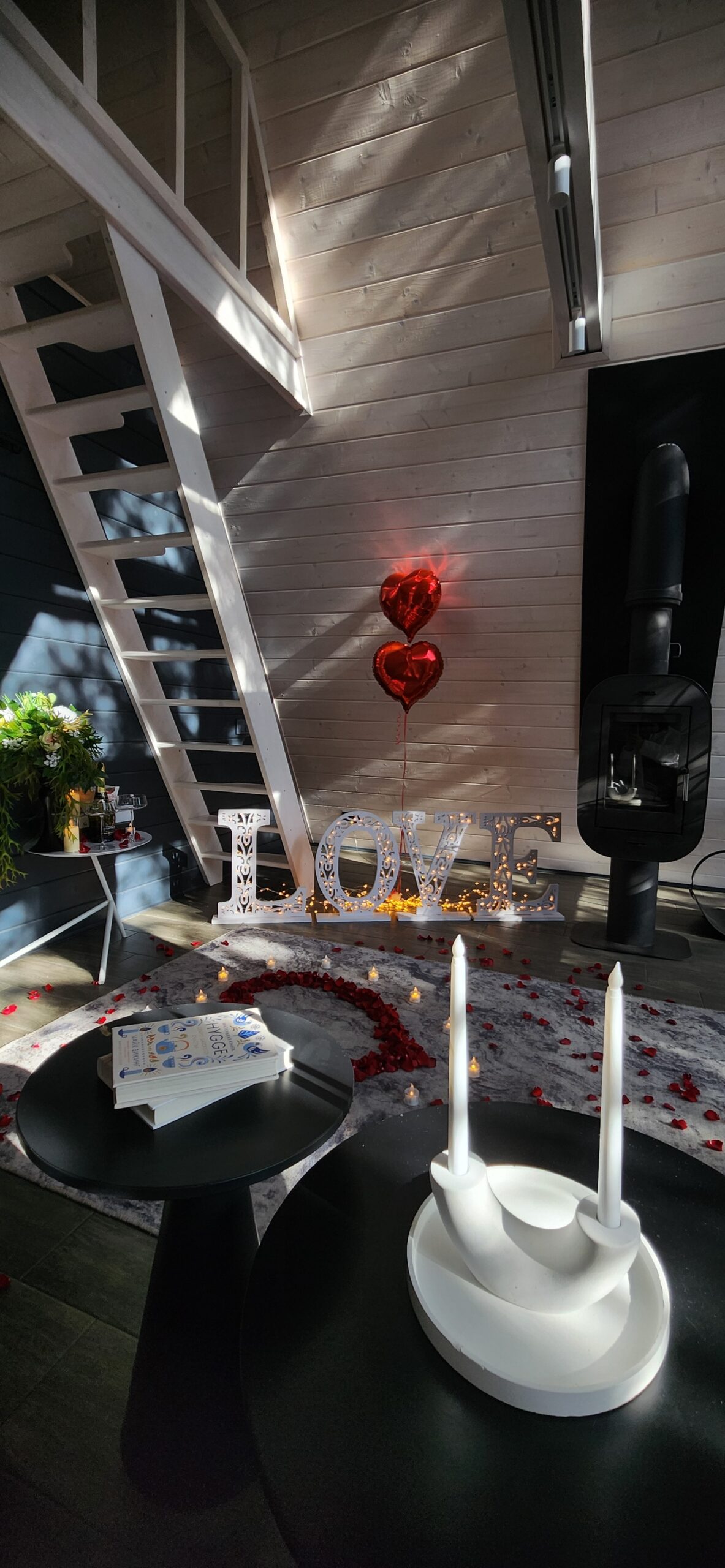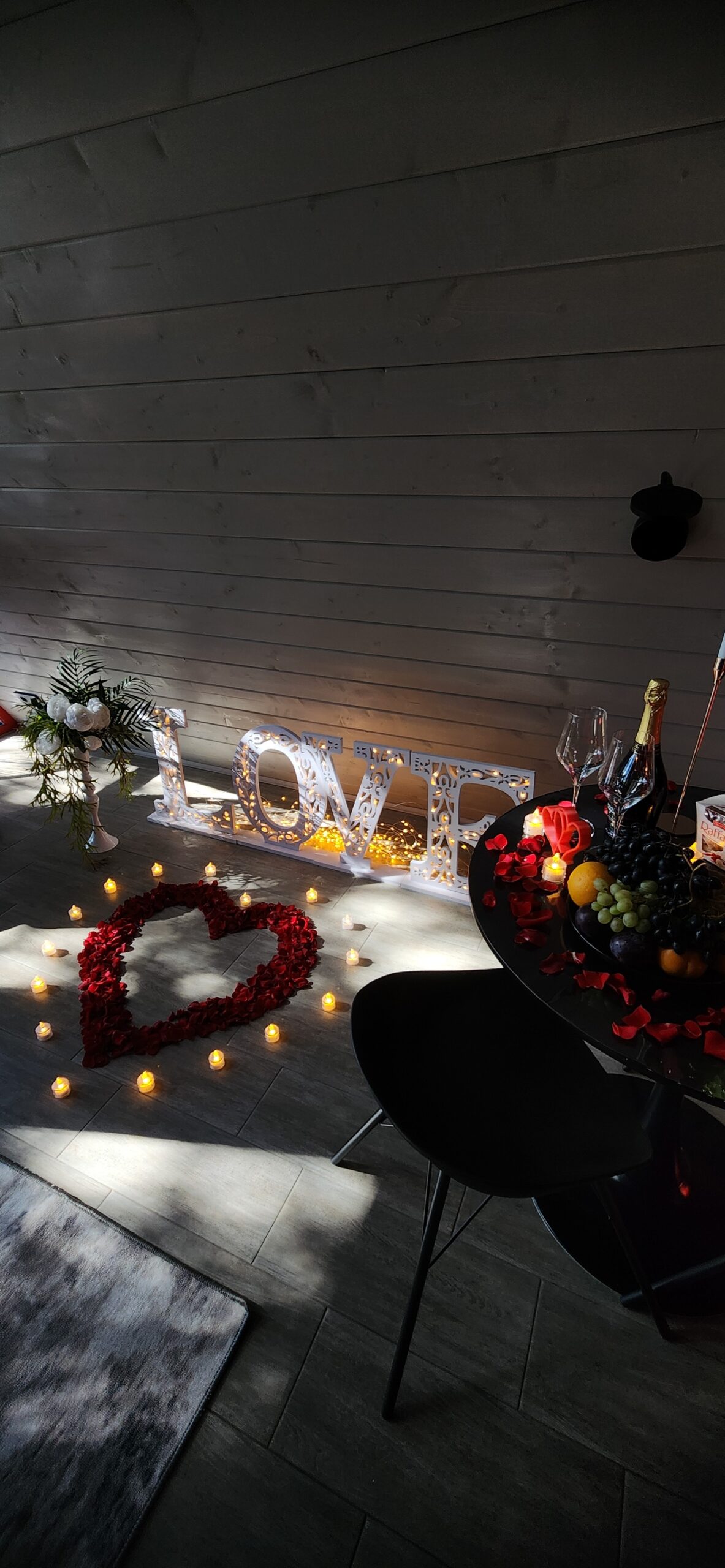 - в доме размещается светящийся декор из ажурных букв LOVE (большие).