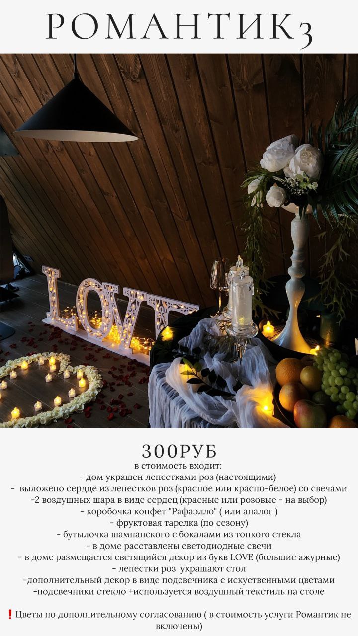 Мы с радостью поможем вам подготовить романтический сюрприз с одним из пакетов услуг «Romantic» .